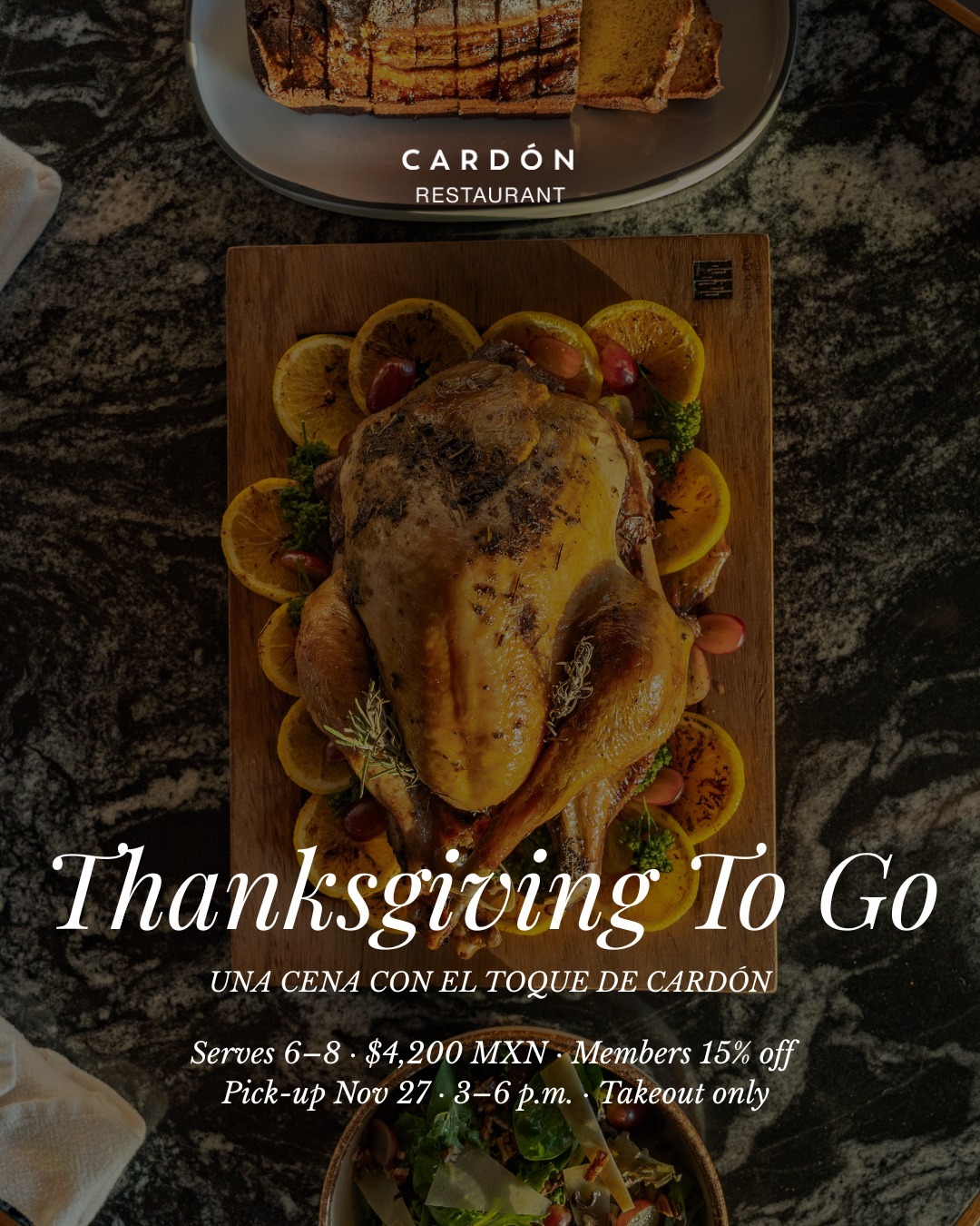 Tenemos menú To Go de Thanksgiving incluye: